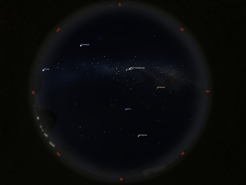 Complete sky on Saturday, June 29 as seen from Adelaide at 18:45 ACST, 90 minutes after sundown (click on