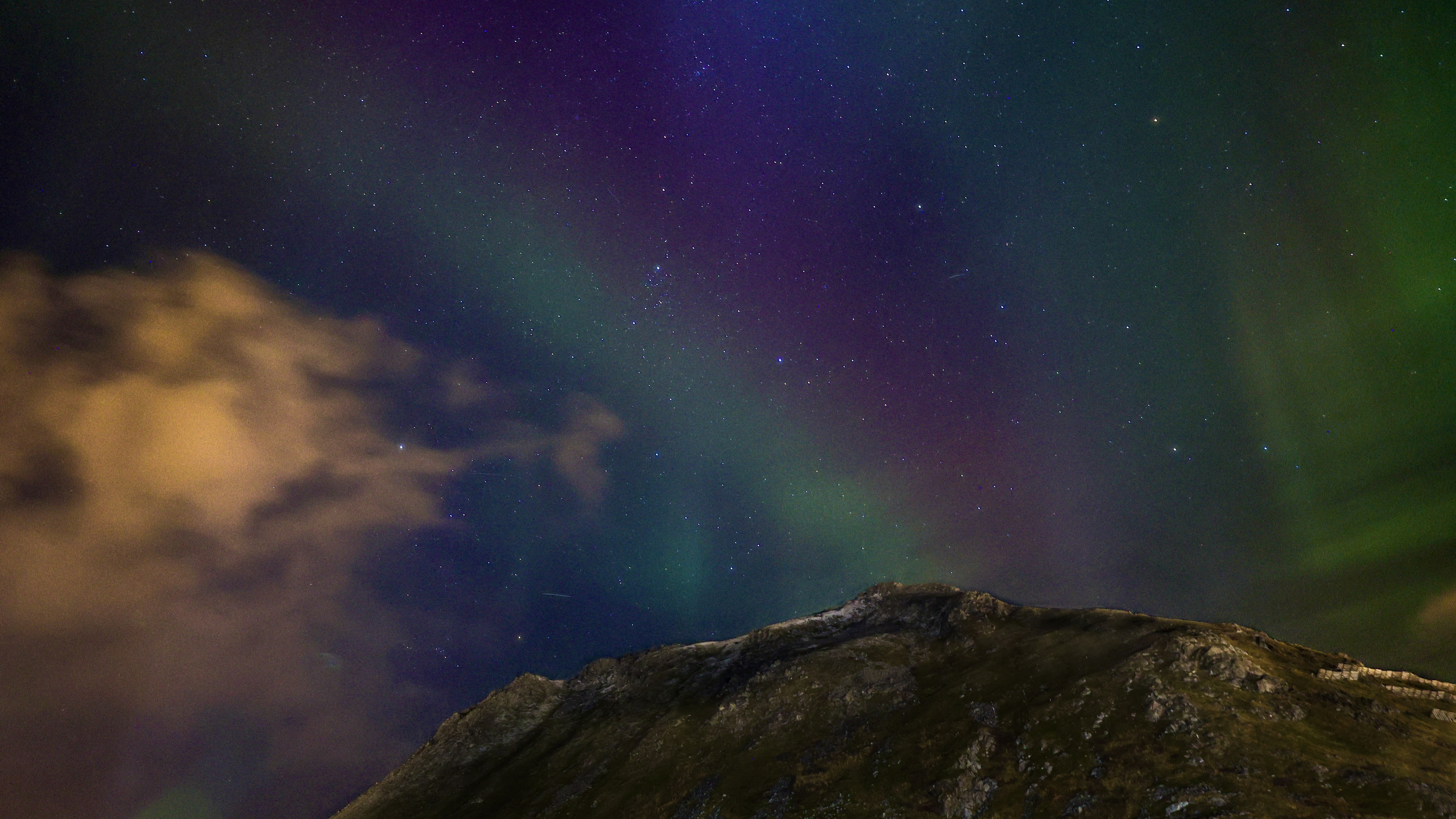 Then, out of nowhere, a substorm arrives. It seems to tear a hole in the cloud just wide enough to give us aurora hunters a glimpse of the show unfolding above. A thin band of green light snakes across the sky, then suddenly begins to dance, swirling overhead and reaching down to offer us a cosmic handshake and welcome us to the Arctic. A fitting reward for those who had waited patiently out on deck.