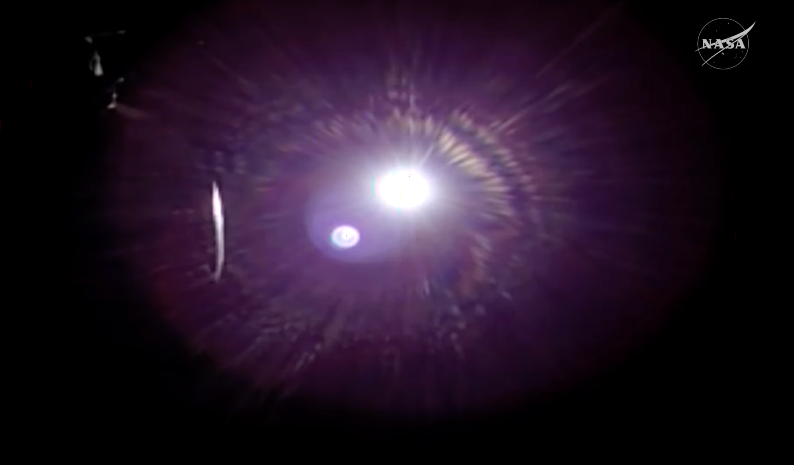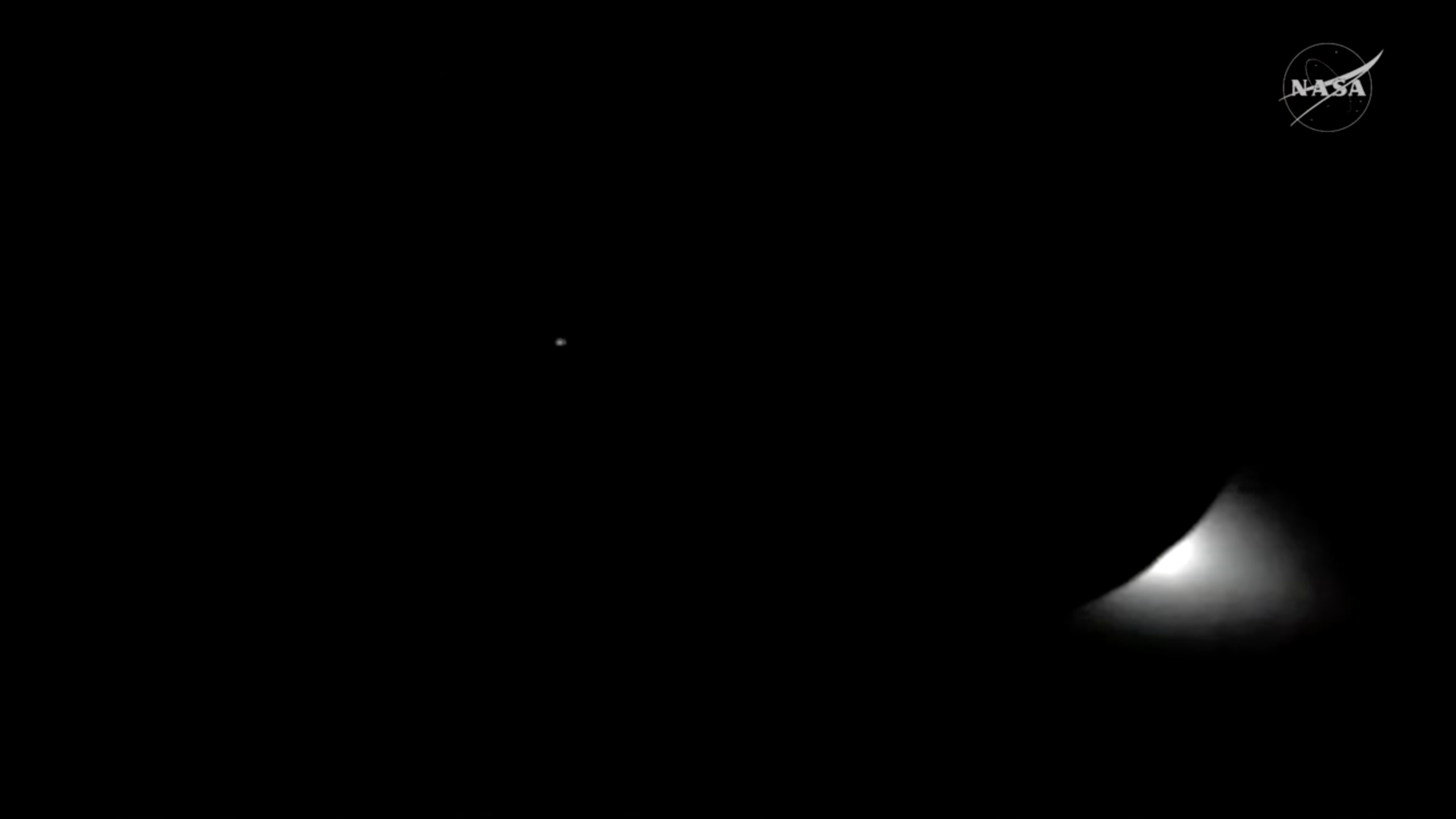 There would have been no diamond ring for the astronauts, because of the overwhelming relative obvious measurement of the Moon, however there was a superb burst of sunshine captured on the video feed as Integrity emerged again into daylight.